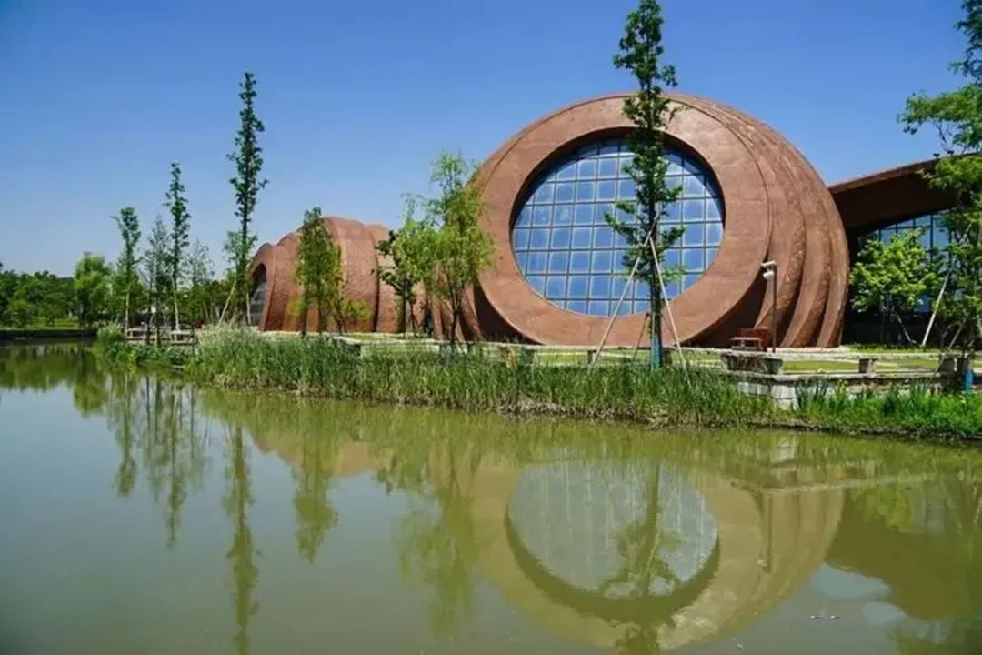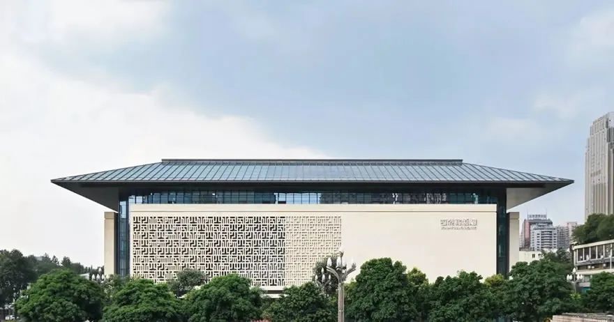 它本身的建筑外型是花了很多心思的,从传统建筑文化中提炼出缓坡屋顶、深挑檐等元素,屋顶采用是彩釉玻璃。