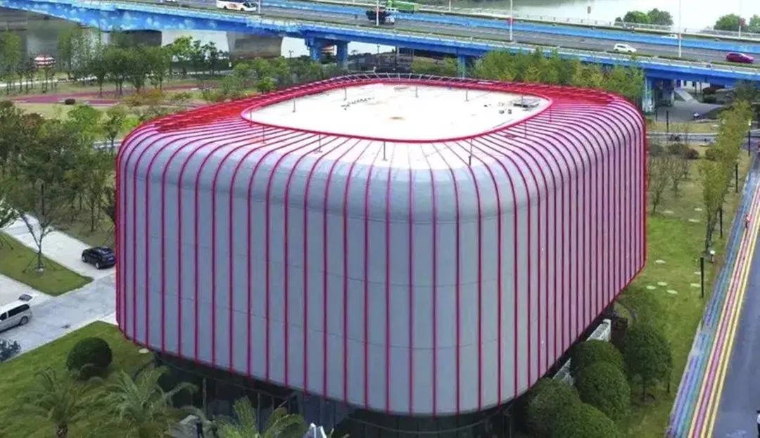 上面的宁波韩岭美术馆网友说像穿山甲,而下面这个扬州航空馆却又香套了个红丝袜。