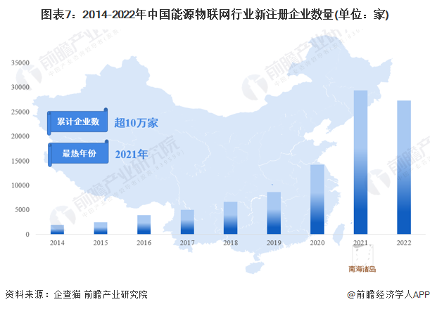 从中国能源物联网行业新注册企业数量看,2016年以来出现较快增长趋势,其中2021年企业注册数量最多,达到2.9万家,较2020年增加约1.5万家。2014年以来,累计注册能源物联网相关企业超10万家。