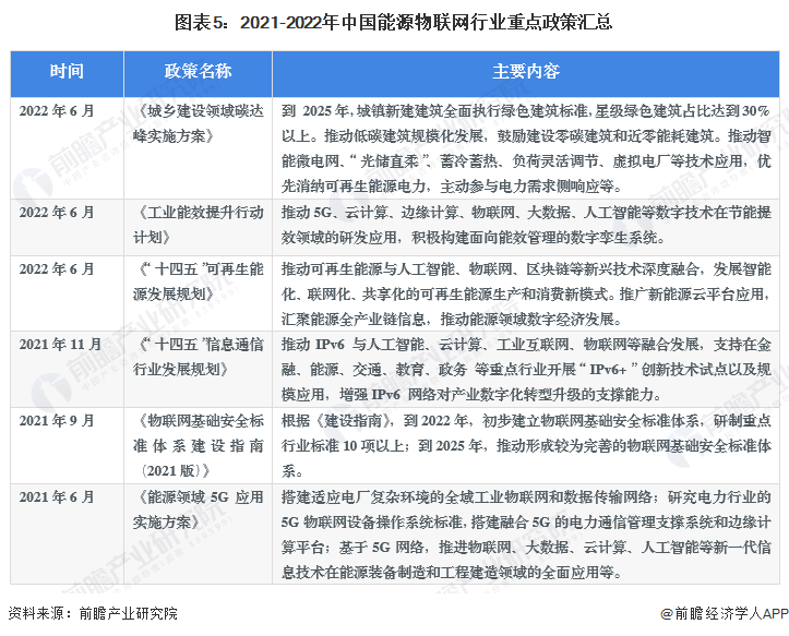 2021年以来,国家制定了众多关于能源物联网技术、应用的政策,包括推动人工智能、5G技术发展,加快物联网在能源领域的应用。重点政策汇总如下: