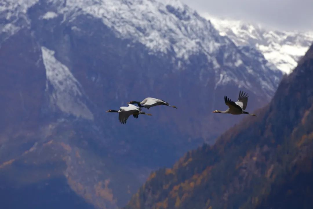 一些可爱的动物,比如野驴、白唇鹿、藏羚羊、藏原羚、黑颈鹤,在我们眼里其实是比较多的,我们更加注重的是更珍稀、更容易灭绝的生物。像黑颈鹤,我们几乎每次去调查都能看到,它有个天性:一夫一妻,而且是终身制。夏天去,还可以碰到它孵化出来的小崽崽,夫妻俩带着崽崽到湿地里去觅食。再大一点,它们会带着小黑颈鹤在天上去飞、去锻炼。到冬天,它们就要迁徙了。