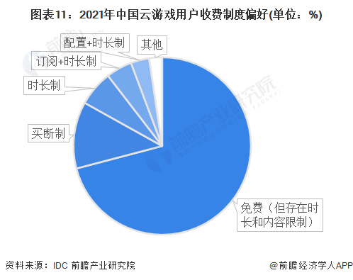 从中国云游戏用户对于云游戏平台收费模式的需求偏好来看,根据IDC提供的数据,中国云游戏用户对于免费(游戏内容和时长限制)的模式最青睐,比例超过70%: