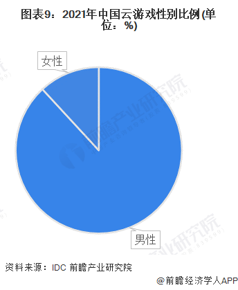 从性别比例来看,2021年中国接近90%的云游戏用户为男性,当前云游戏的模式主要为本地游戏线上化的内容,尚未有成熟的专门为云游戏模式打造的产品。