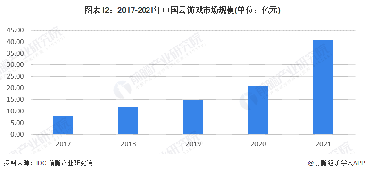 根据IDC公布的数据显示,2021年中国云游戏市场规模已超过40亿元,同比增长超过90%,达到近年来的新高。