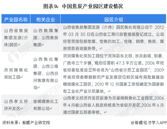 目前焦炭行业的产业园区数量比较少,包括洪洞煤焦化深加工园、山西孝义经济开发区和山西省焦炭集团龙源(介休)园区等。