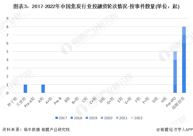 从焦炭的投资轮次分析,目前焦炭行业的融资轮次中,A轮后的融资寥寥无几。我国焦炭行业的融资轮次主要分布在IPO和战略投资等上市后期阶段。