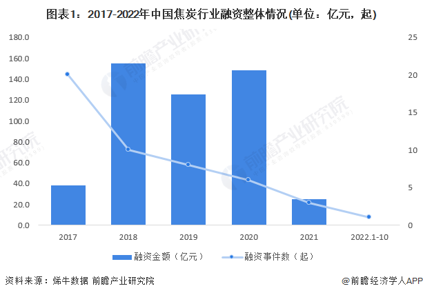根据烯牛数据库,2017-2022年期间,我国焦炭行业共发生了47起融资事件,投融资活跃度逐年下降。2022年,截至10月27日,焦炭行业仅发生1起融资事件,且相关融资金额暂未披露。