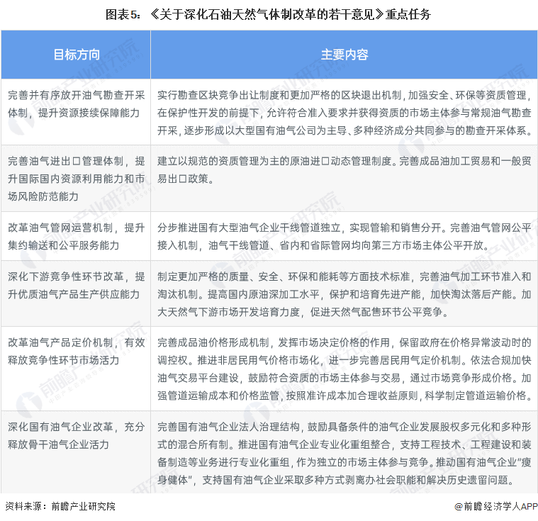 中共中央、国务院印发了《关于深化石油天然气体制改革的若干意见》,明确了深化石油天然气体制改革的指导思想、基本原则、总体思路和主要任务。基于2017年公布的油气改革方案,油气改革旨在通过引入竞争,优化资源配置,打破现有国企垄断格局,主要有三个方向:一是上游资源供应,逐步有序放开勘探、开发和原油进口资质;二是中游管道运输,管道独立,向独立第三方放开,提升输送效率;三是下游终端销售,销售是混改的重点,推动油气产品定价机制改革。
