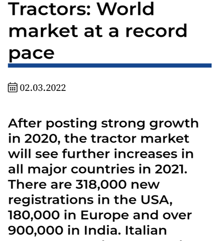 由此可见,印度在农用拖拉机领域的确实力不俗,堪称强大。
