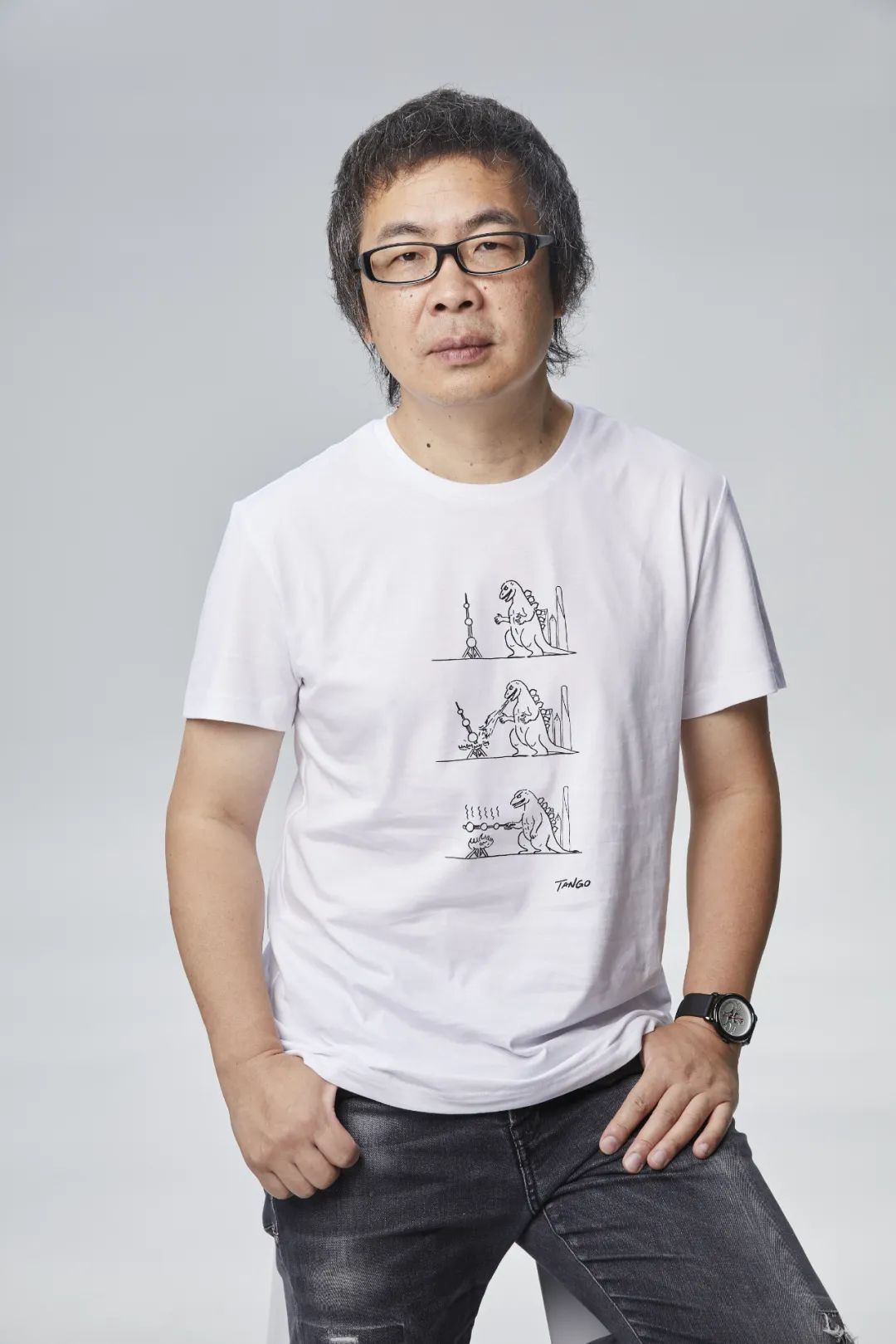 Tango的另一个身份是广告人。本科时,他在上海交大读数学专业,1990年代从中央工艺美院(现清华美院)硕士毕业后入职广告公司,再创业,做广告是他的谋生手段。他认为自己是典型的理科生,在创作时也很有逻辑性。“我都是做一些逻辑上很成立、但结果又很荒谬的东西。”在漫画和工作之外,他喜欢看推理小说,从小就喜欢太空、武器和汽车。他养了三只猫,猫也常常成为他漫画里的主角。“猫有自己的‘猫格’,它不会像狗一样来拍你马屁,是吧?”