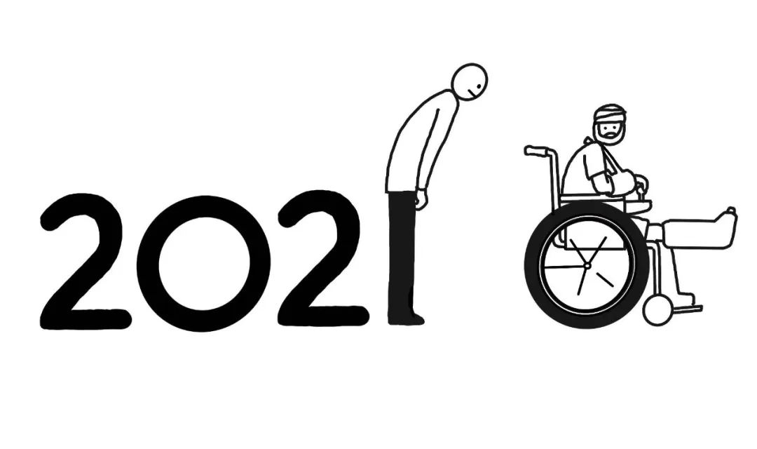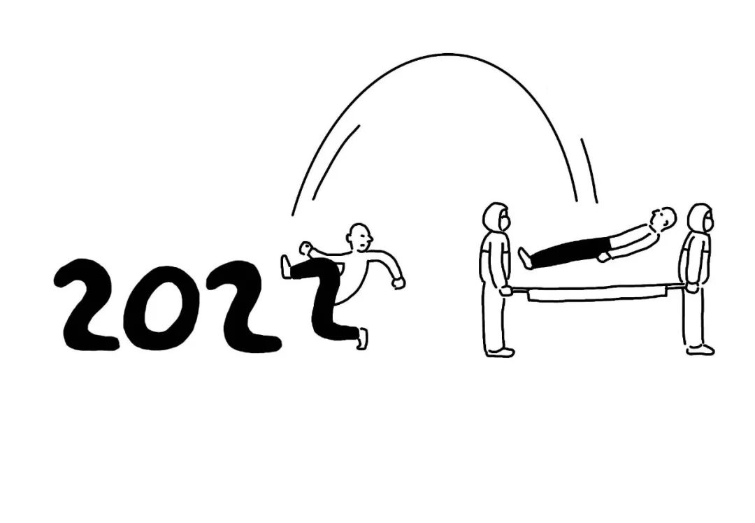 每到跨年时,Tango都会用巧妙的小画辞旧迎新——“2021”的“1”被“2”一脚踢开,再被担架抬走;“2020”的“0”则具象化为轮椅的轮子,一个伤员坐着轮椅离开,而“1”则化身为一个鞠躬的人,恭敬地将伤员送走……