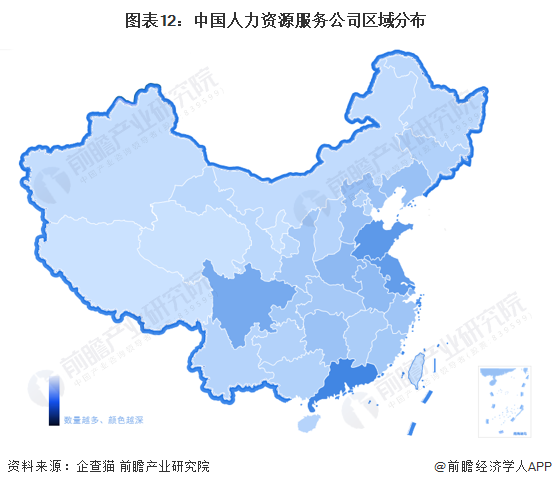 1、区域竞争:广东、山东、江苏和四川人力资源服务公司最多