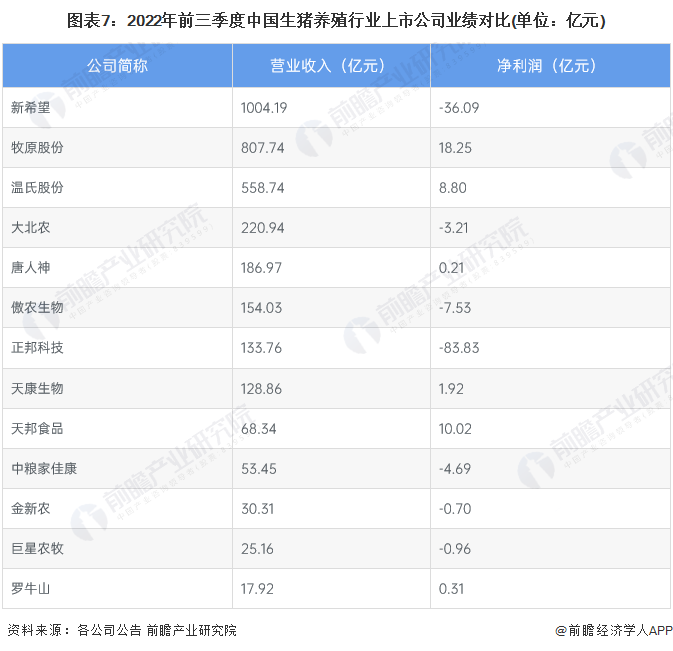生猪养殖行业上市公司生猪养殖业务业绩对比