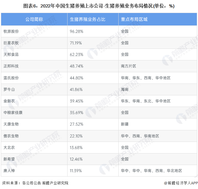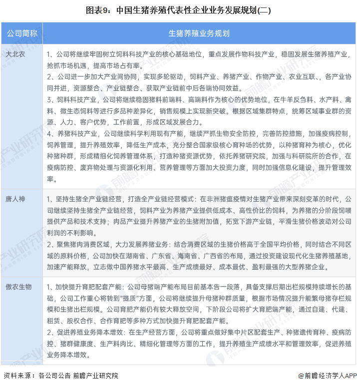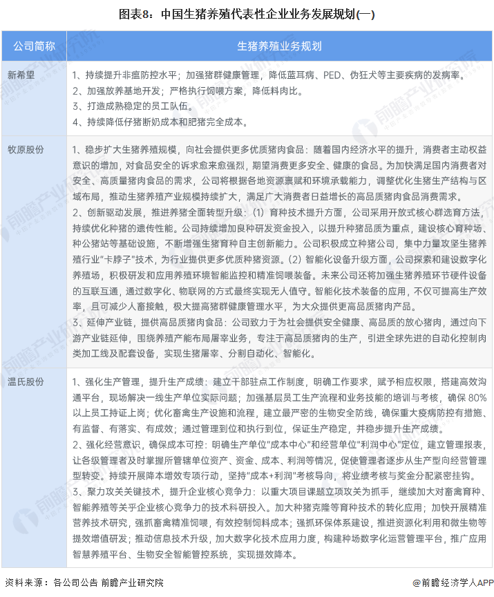 生猪养殖行业上市公司生猪养殖业务规划对比
