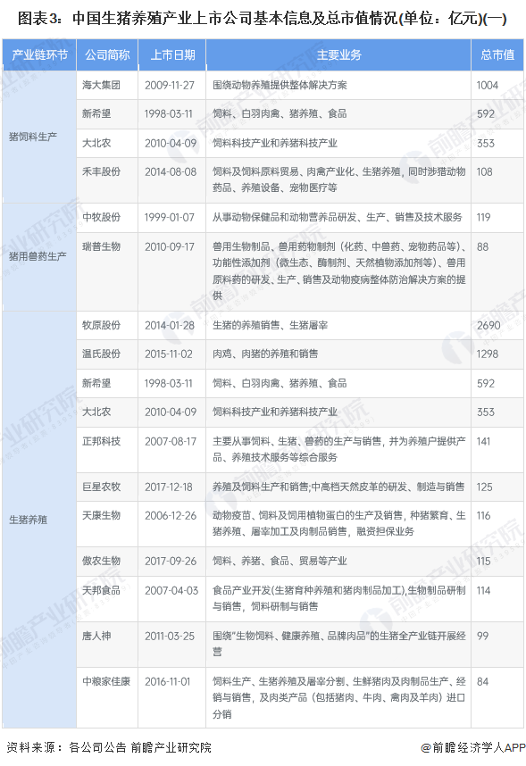 行业主要上市公司:牧原股份(002714)、正邦科技(002157)、温氏股份(300498)、新希望(000876)等。