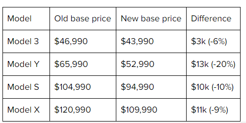 紧接着,1月13日,特斯拉又下调了欧美多个市场的售价。在美国,不同车型优惠幅度在6%-20%不等。