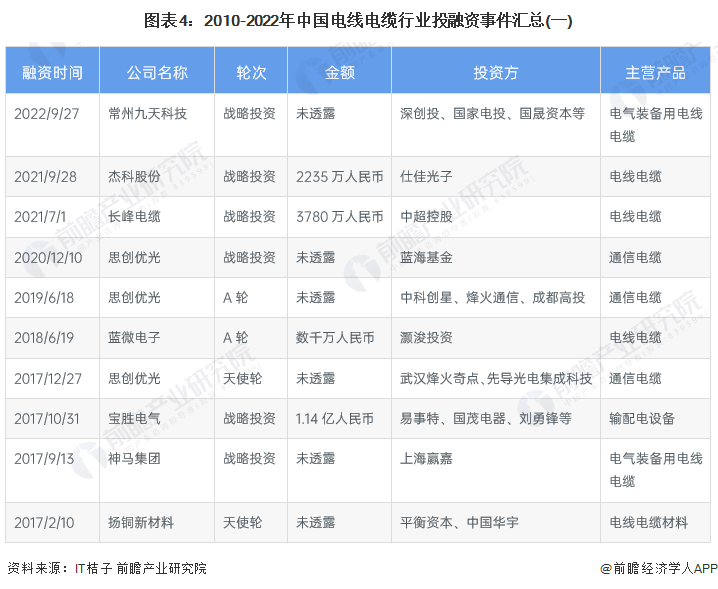 4、电线电缆行业投融资热点集中于通信电缆