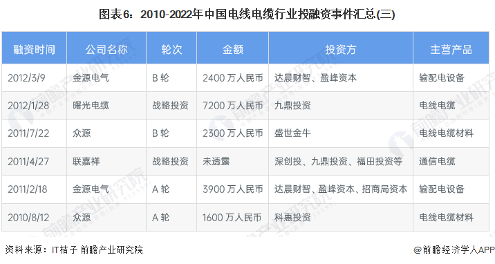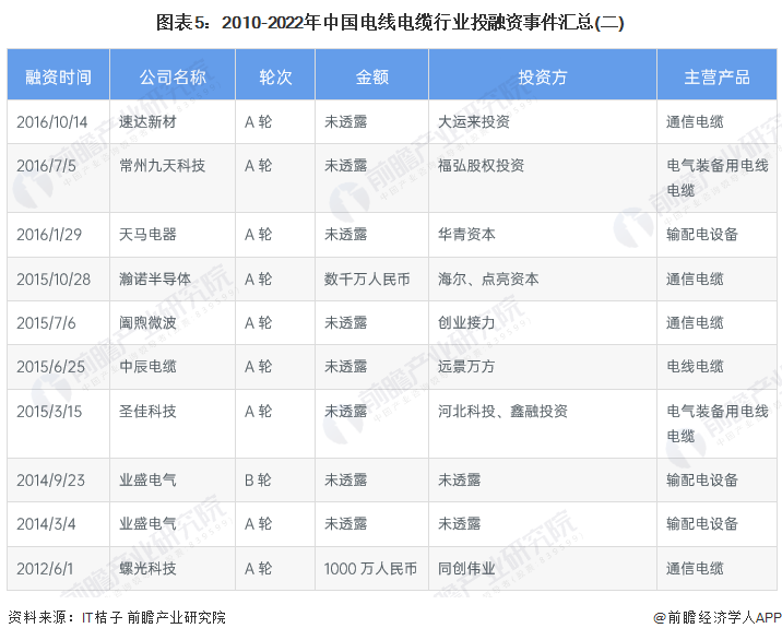 2、电线电缆行业投融资仍处于早期阶段