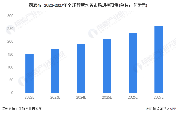 2027年全球智慧水务市场规模有望达260亿美元