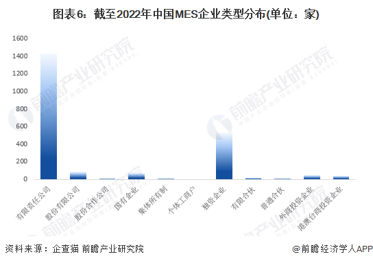 根据中国企业数据库企查猫,目前存续和在业的企业共1601家,中国MES企业以有限责任公司为主,目前共有1434家,其次为独资企业的530家。