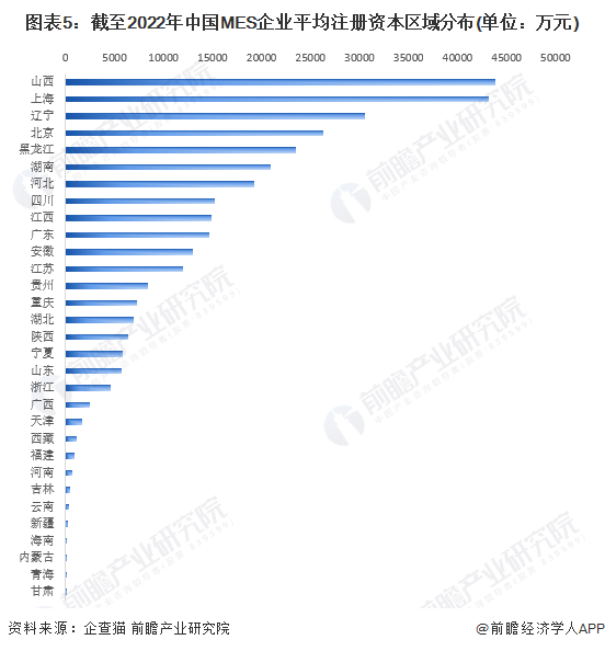 根据中国企业数据库企查猫,目前中国MES企业的平均注册资本区域分布中,山西企业的平均注册资本最高,达到43910万元。