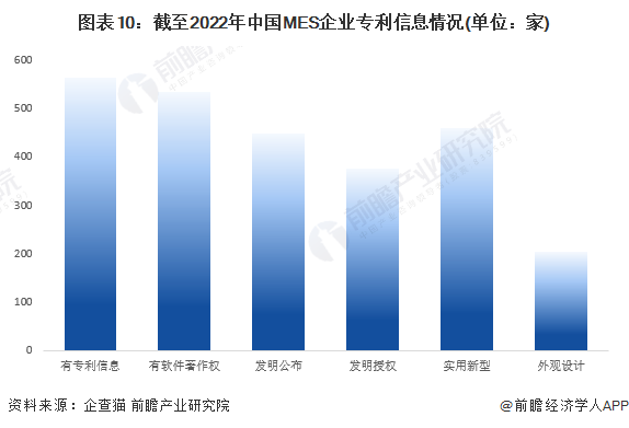 根据中国企业数据库企查猫,在知识产权方面,目前存续和在业的1601家企业中,共565家企业有专利信息,535家企业有软件著作权。在专利信息中,MES企业以实用新型专利为主,获得实用新型专利的企业有460家。