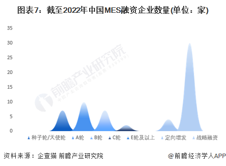 根据中国企业数据库企查猫,在存续/在业的1601家企业中,共有61家企业有融资信息,而其中以战略融资为主。截至2022年中国MES企业中,有30家企业为战略融资,10家企业为A轮融资。