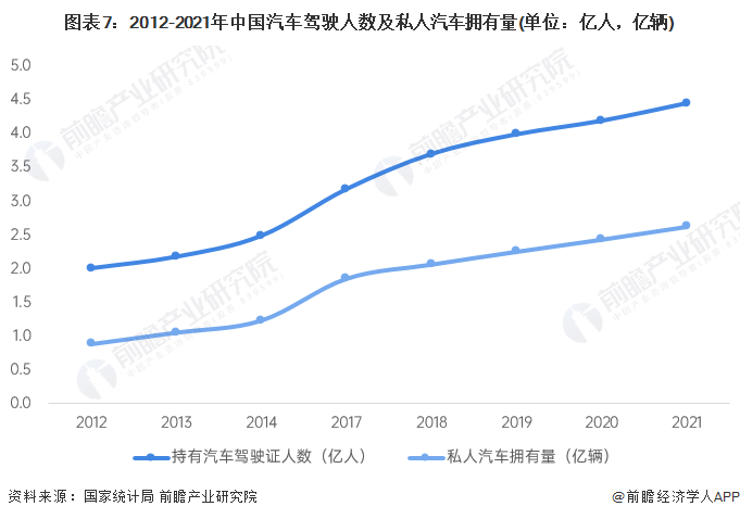 根据国家统计局公布的数据,2012-2021年,我国持有汽车驾驶证人数与私人汽车拥有量之间的匹配缺口在逐步扩大,表明我国有证无车人群规模扩张,这部分有证无车人群将是汽车租赁市场的主要潜在用户群体。截至2021年底,中国私人汽车拥有量为2.62亿辆,持有汽车驾驶证人数为4.44亿人,有证无车人群数量达1.82亿人,同比增长4%,将带动汽车租赁市场需求提升。