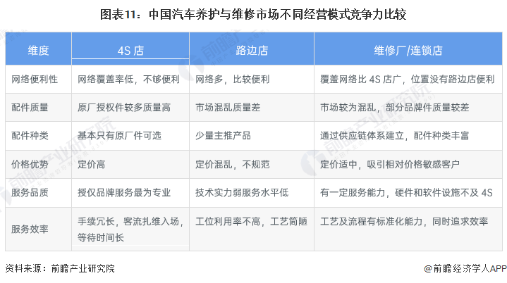 由于我国汽车养护与维修市场起步晚且成熟度低,各类传统渠道目前均存在明显短板,无法全面满足客户多元化的需求。目前中国汽车维保市场的渠道形态主要由主机厂授权渠道及独立后市场渠道组成,其独立后市场渠道多为小规模路边店,大型维修厂及品牌化连锁店虽在高速发展但目前仍是少数派。