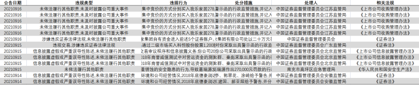 股票代码、股票简称、公告日期、违规类型、违规行为、处分措施、处理人、相关法规