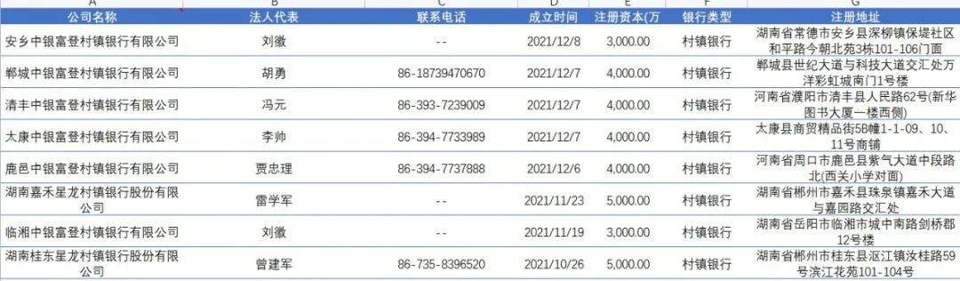 2021-1980年银行基本信息库包含公司名称、法人代表、联系电话、成立时间、注册资本等