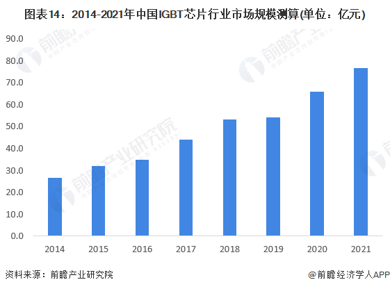 综上,IGBT芯片和IGBT模块市场规模比例约为1:3。若以此比例测算,2021年,IGBT芯片市场规模约为76.4亿元。