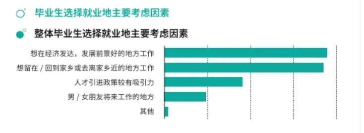 优先考虑在经济发达,发展前景好的地方工作,已经成为大多数同学选择就业地时的共识,希望留在/回到家乡或者是去离家乡近的地方工作也是大多少同学的第一选择。
