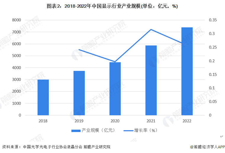根据《中国新型显示产业发展现状与趋势洞察》披露的信息显示,2012年至2021年,我国显示产业规模年复合增长率达到25.8%,由此初步统计2022年中国显示行业产业规模将达到7382亿元。
