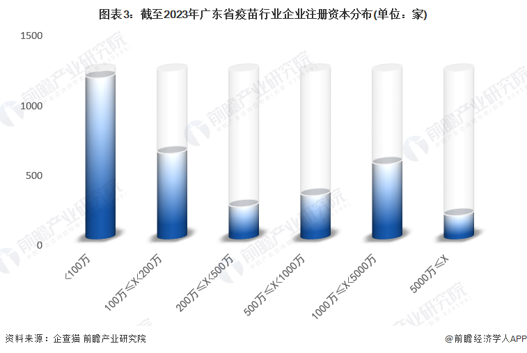 ──广东省疫苗行业企业注册资本在500万以上的占比约为34%