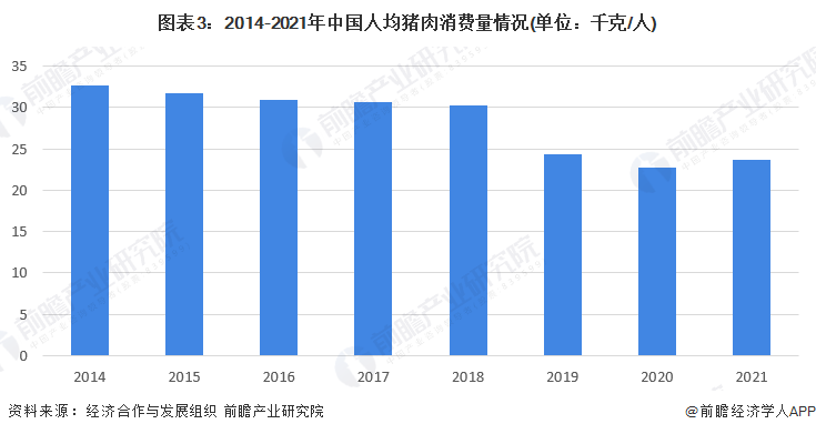 受“非洲猪瘟”影响,中国人均猪肉消费量波动下降