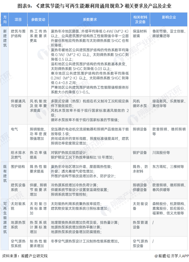 我国建筑节能产业环节众多,其中建筑节能产品相关设计、制造企业主要有鲁阳节能、亚士创能、东方雨虹、三棵树、南玻集团、江苏心日源等,建筑节能设计、工程企业主要有江苏盛世节能、启迪设计等,节能建筑运维企业主要有达实智能、中节能建筑、延华智能等。
