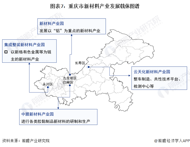 发展新材料产业是推动重庆市发展新格局的重要路径之一,重庆市正在大力推动新材料制造及推广应用,当前已形成了4大主要的新材料产业聚集区:九龙坡区的新材料产业园、永川区的集成整装新材料产业园、巴南区的中膜新材料产业园以及长寿区的云天化新材料产业园。