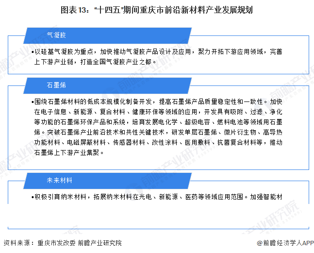 “十四五”期间,重庆市将从特色新材料及前沿新材料两个方面发展新材料产业: