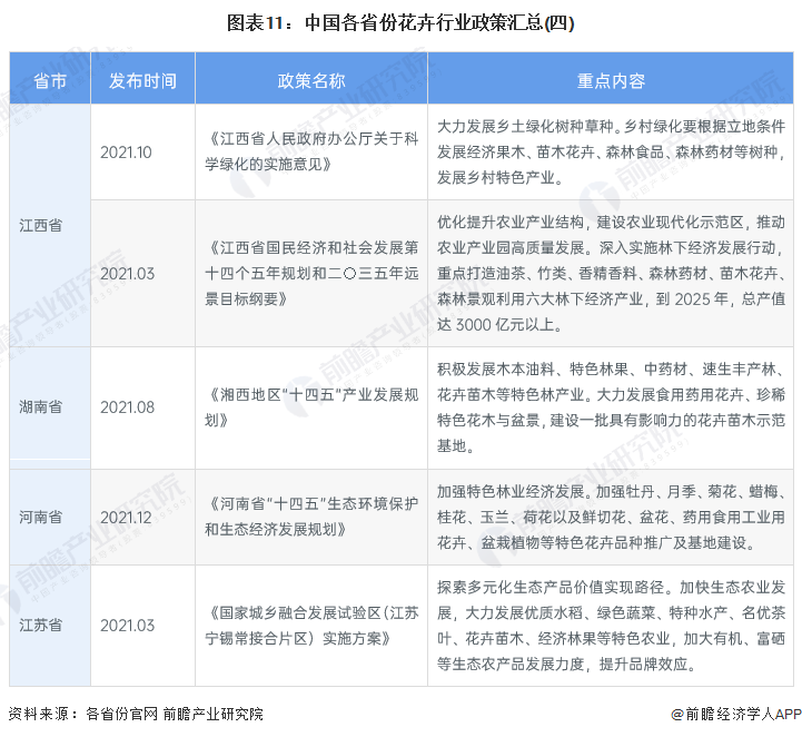——31省市花卉行业政策汇总