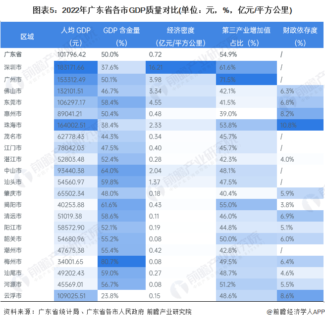 ——深圳市经济密度最大、梅州市GDP含金量最高