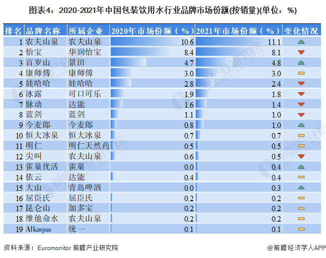 农夫山泉、怡宝、百岁山位列市场份额TOP3
