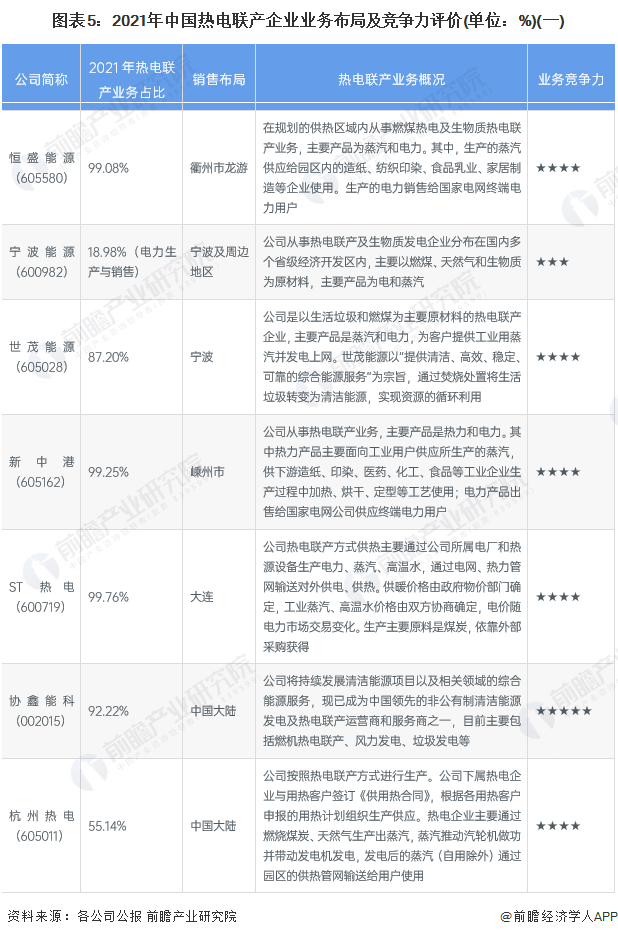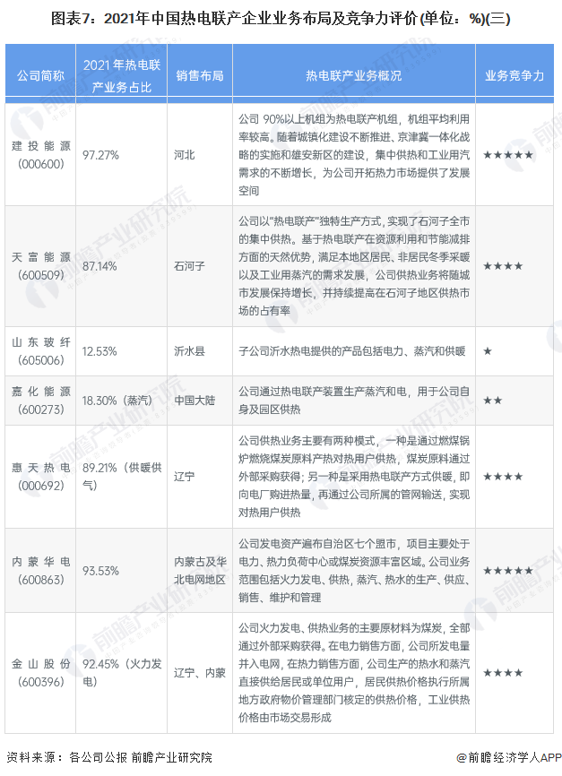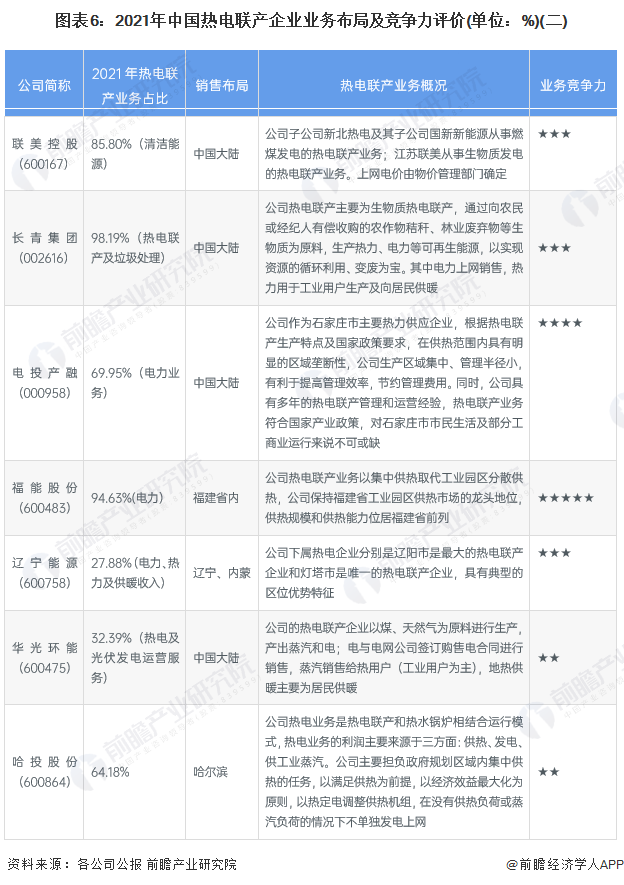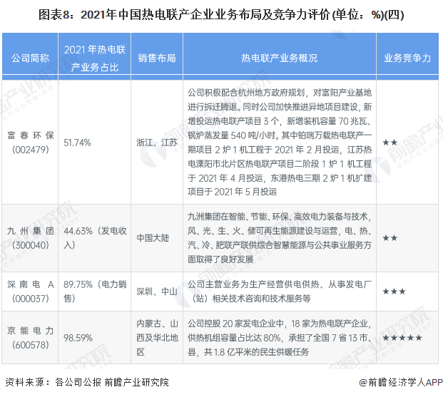 4、中国热电联产行业企业布局及竞争力评价