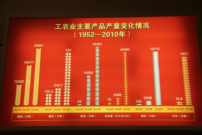 工业制造业真正大幅度跨越式增长,表现为发电量增加1539%;钢产量增长3513%;汽车12162%....... ....。发电量是衡量工业景气程度的重要指标之一。