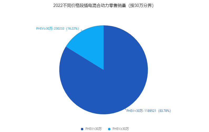 PHEV车型中,售价在30万以及以上零售销量占比16%,售价30万以下零售销量占比84%