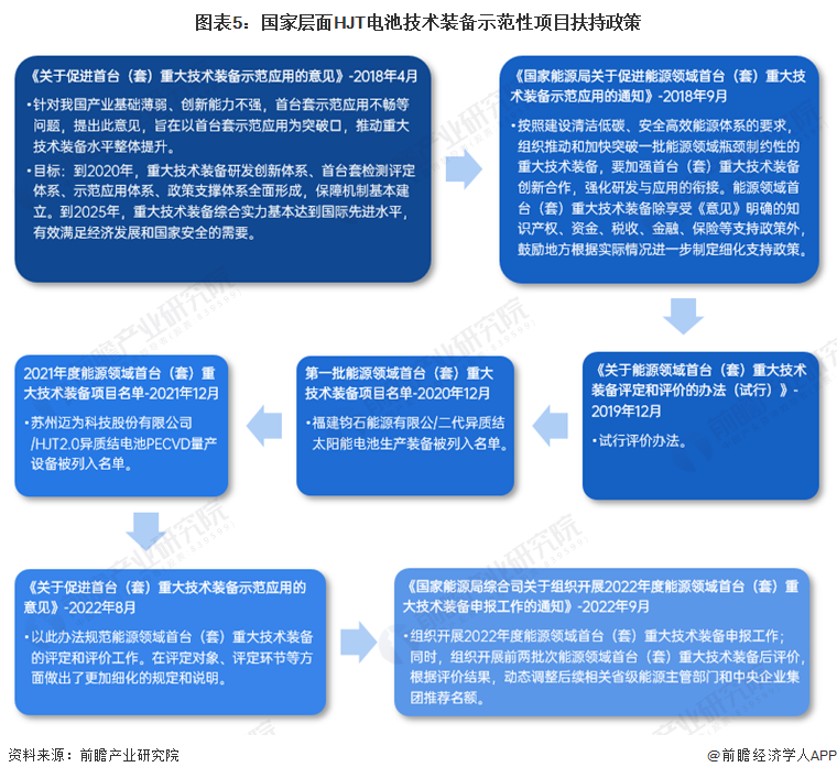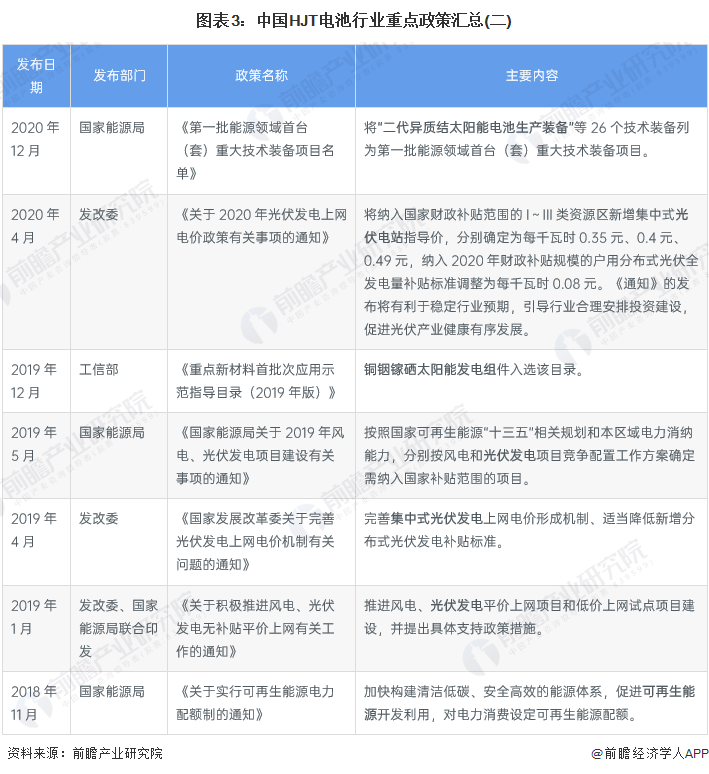 重大技术装备是国之重器,事关综合国力和国家安全。首台(套)重大技术装备是指国内实现重大技术突破、拥有知识产权、尚未取得市场业绩的装备产品,包括前三台(套)或批(次)成套设备、整机设备及核心部件、控制系统、基础材料、软件系统等。自2018年国家发改委首次发布《关于促进首台(套)重大技术装备示范应用的意见》,到2020年、2021年度的能源领域首台(套)重大技术装备项目名单出炉,且异质结电池相关生产设备均被列入名单,可以看出我国对重大技术装备发展的重视以及异质结电池在我国产业发展中的重要性。