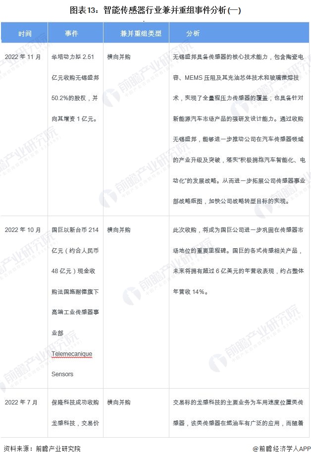 目前中国智能传感器行业兼并重组事件的类型主要为横向整合,例如,保隆科技收购龙感科技,提高了保隆科技市场竞争力。