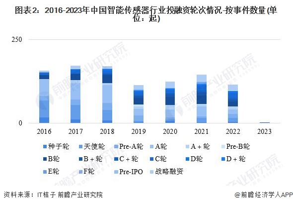 从智能传感器行业的投资轮次分析,中国智能传感器行业的融资轮次仍然处于早期阶段,以A轮和天使轮融资为主,2016-2023年,中国智能传感器行业发生A轮融资事件239起,天使轮融资事件160起,融资规模较大。