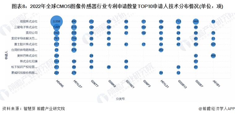 2、全球CMOS图像传感器技术申请人竞争格局