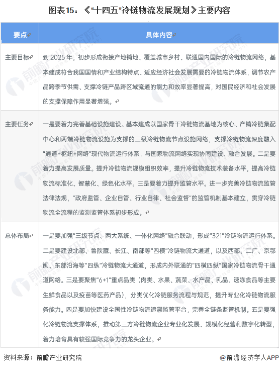 《“十四五”冷链物流发展规划》作为“十四五”时期我国冷链物流行业向前发展的总纲领,为行业“十四五”期间的发展划定了目标与主要任务:
